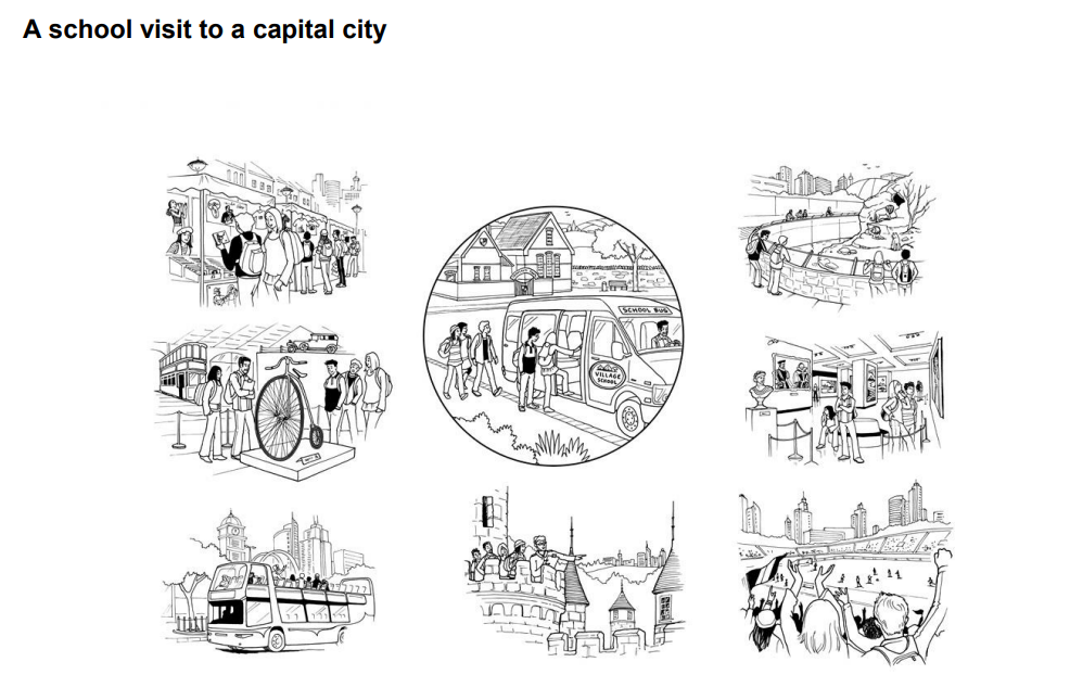 What happens: Now you talk with your partner. You discuss a situation together. The examiner explains a situation and gives you a page with pictures. You must talk about the pictures and try to make a decision.